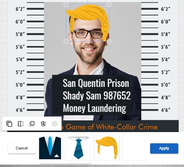 When you’ve added and sized any prop to fit the mugshot, click Apply